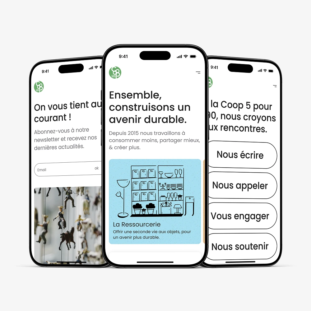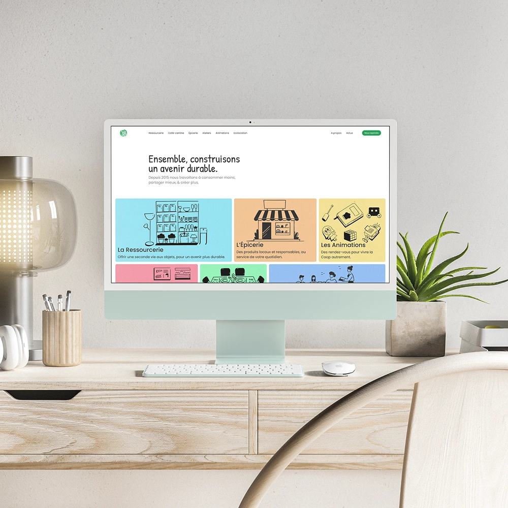 Dans le cadre du projet MyDigitalProject, la Coop 5pour100, une coopérative solidaire caennaise, souhaitait mettre à jour son identité visuelle et renforcer sa présence en ligne afin d’accompagner son développement.