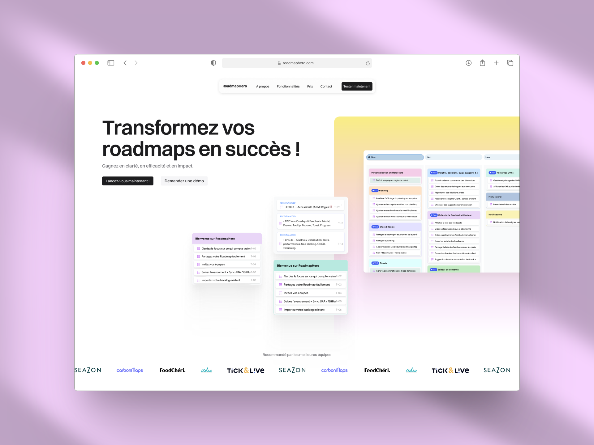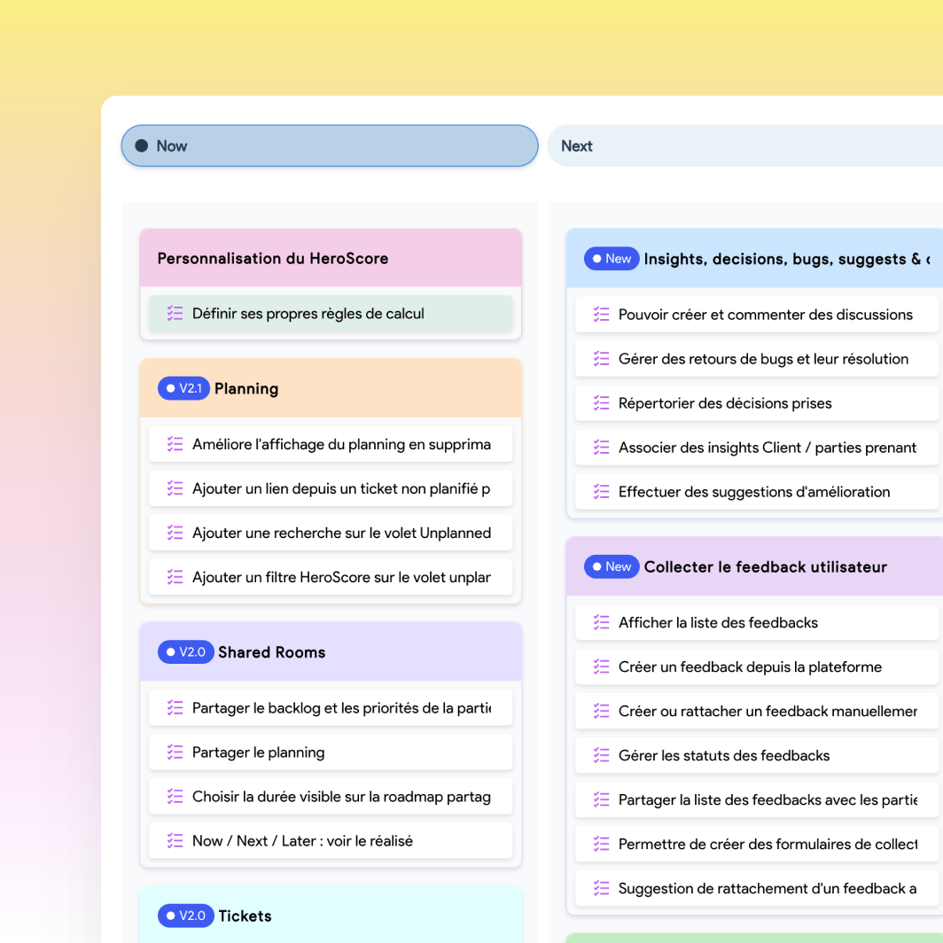 RoadmapHero est une SaaS qui vient régler le problème d’alignement entre équipes produit, business et client en proposant un produit de gestion de projet accessible, clair et efficace, pensé pour tous les profils.