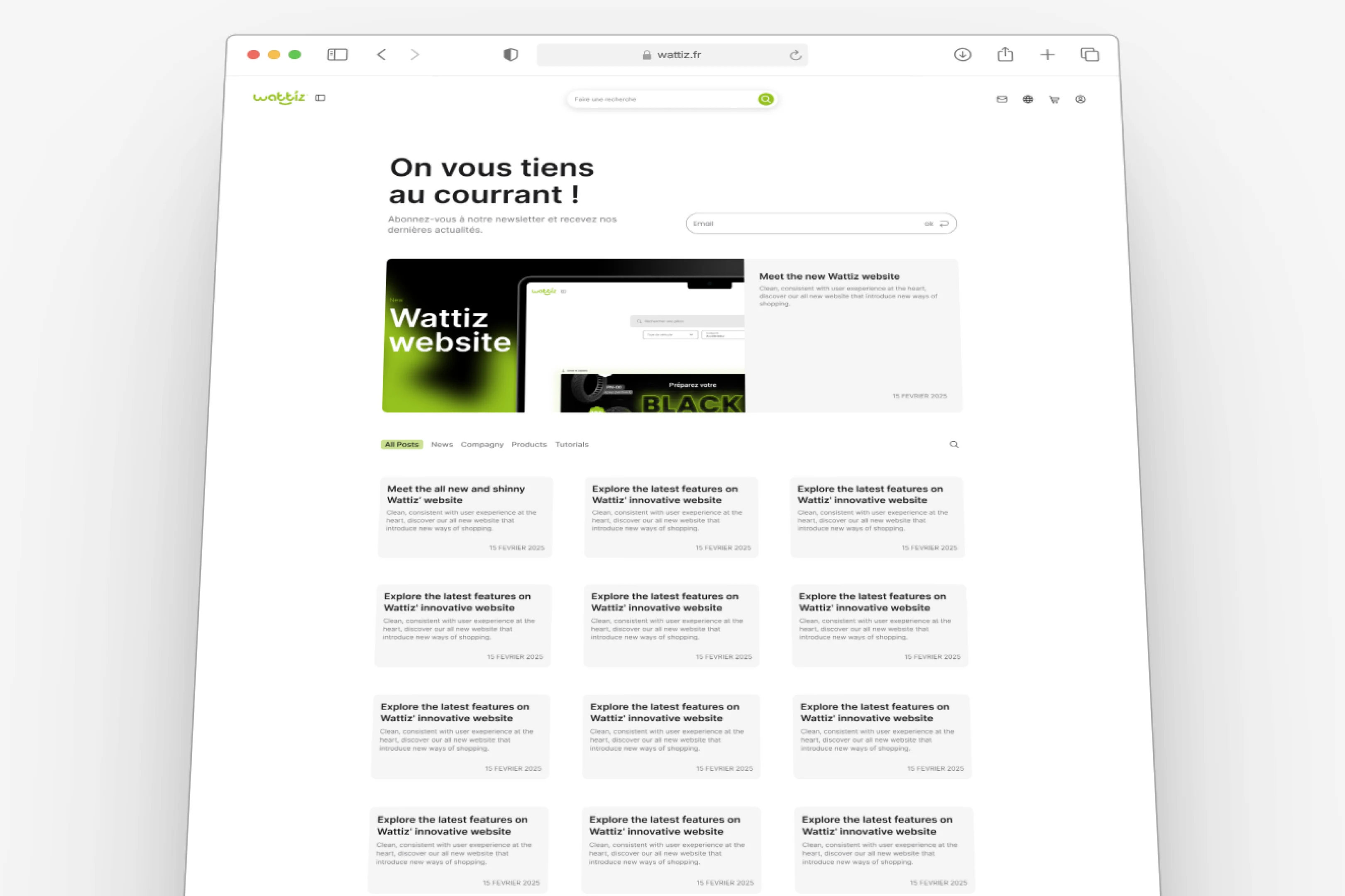 Grossiste b2b en pièces détachées pour véhicules électrique, Wattiz est une entreprise caenaise qui souhaitait renforcer son image, améliorer sa communication digitale et moderniser ses supports pour accompagner sa croissance.